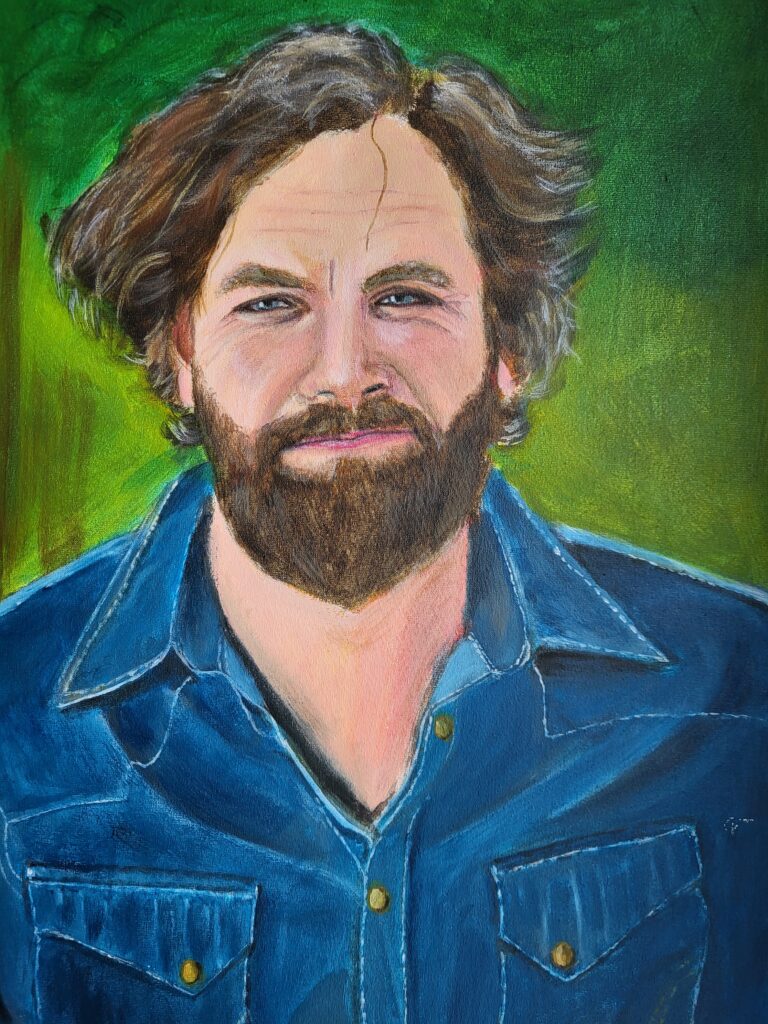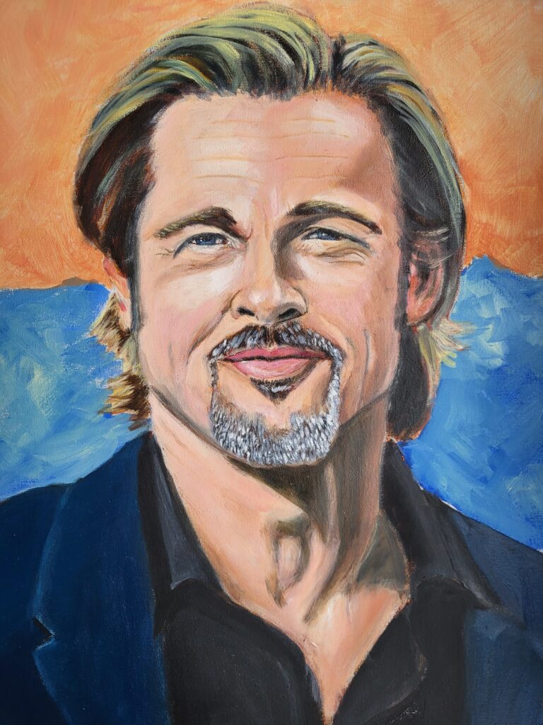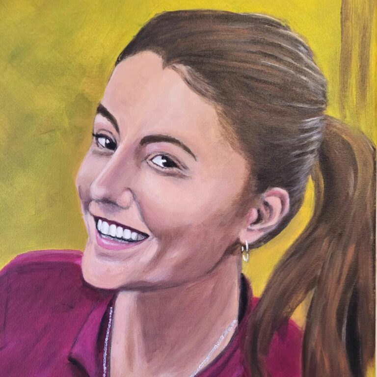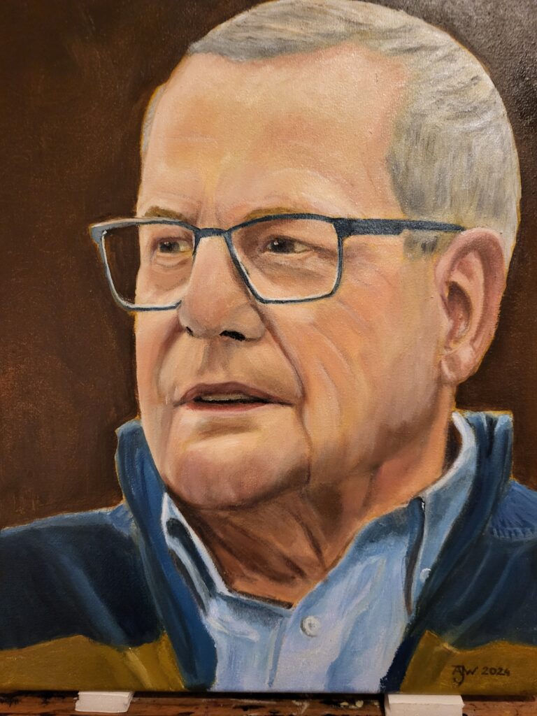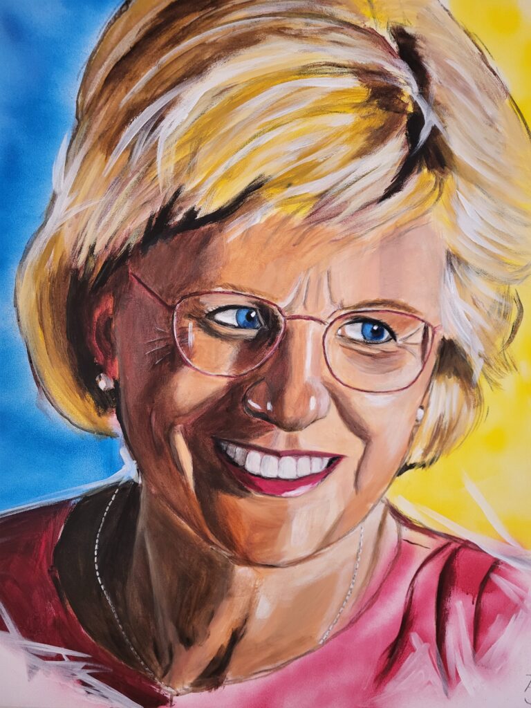 Portrait in blue, white and umber of a great Dutch athlete…in acrylic on paper